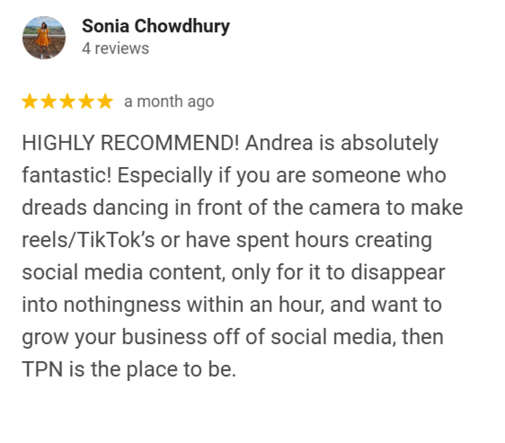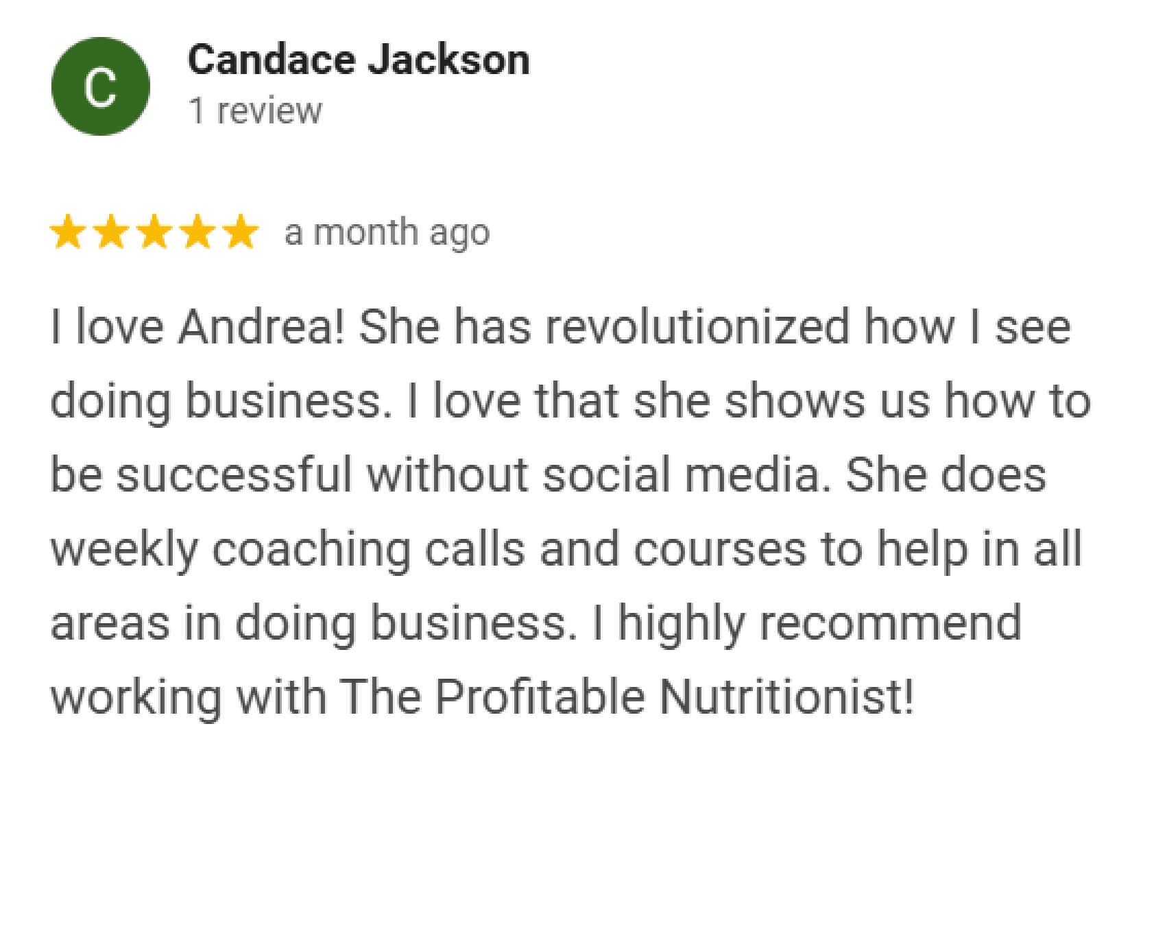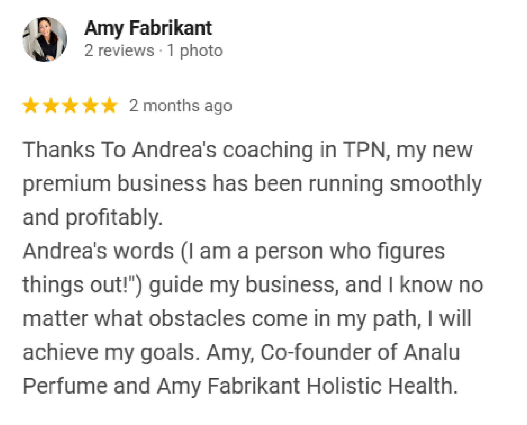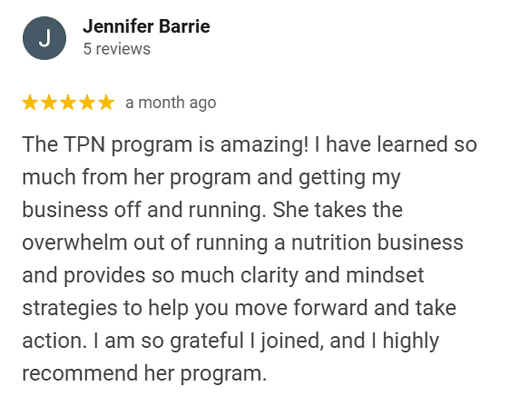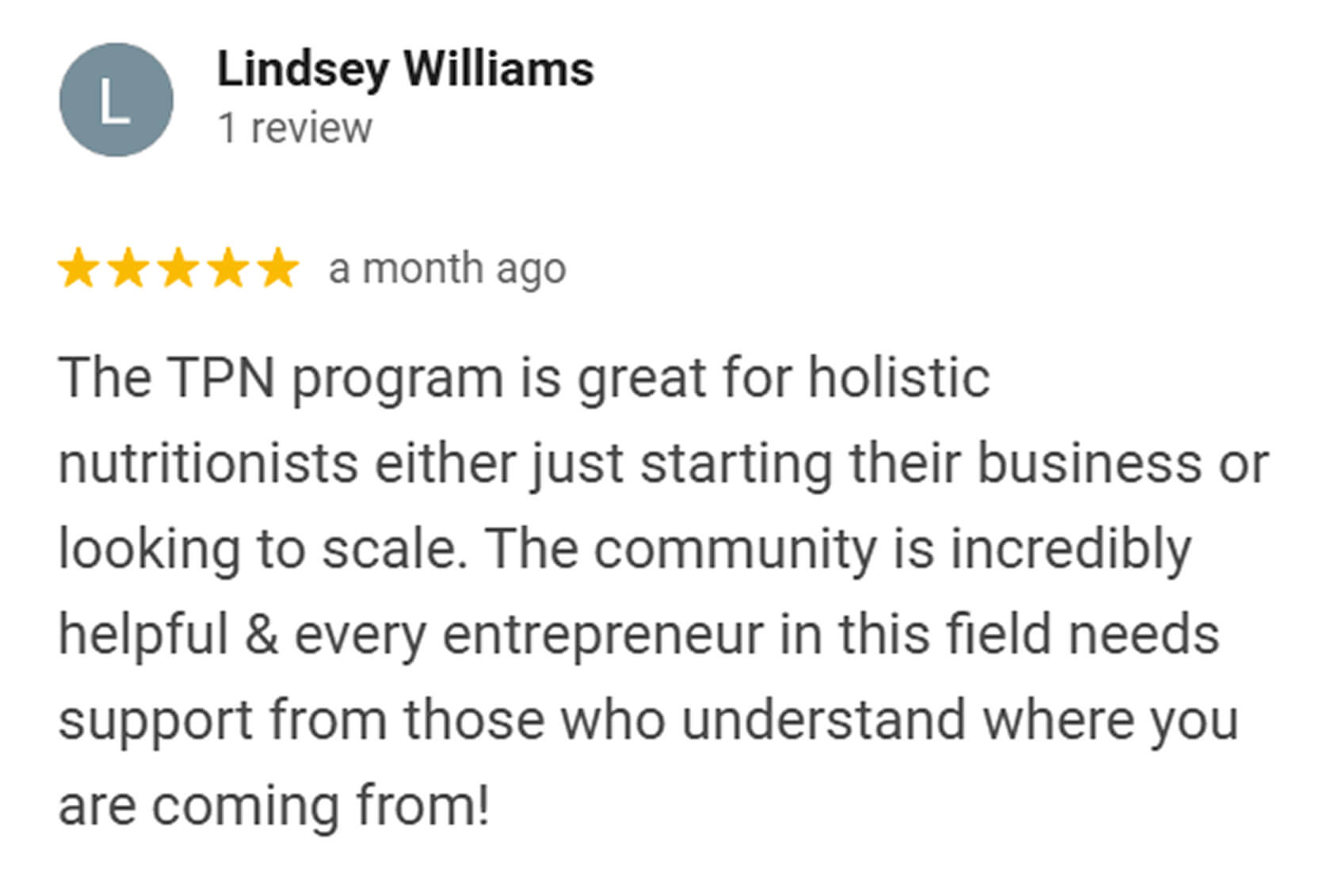 “TPNs modules, trainings, and weekly coaching are amazing! I followed Andrea’s teachings, got my website up, payment set up, and got my first client!“