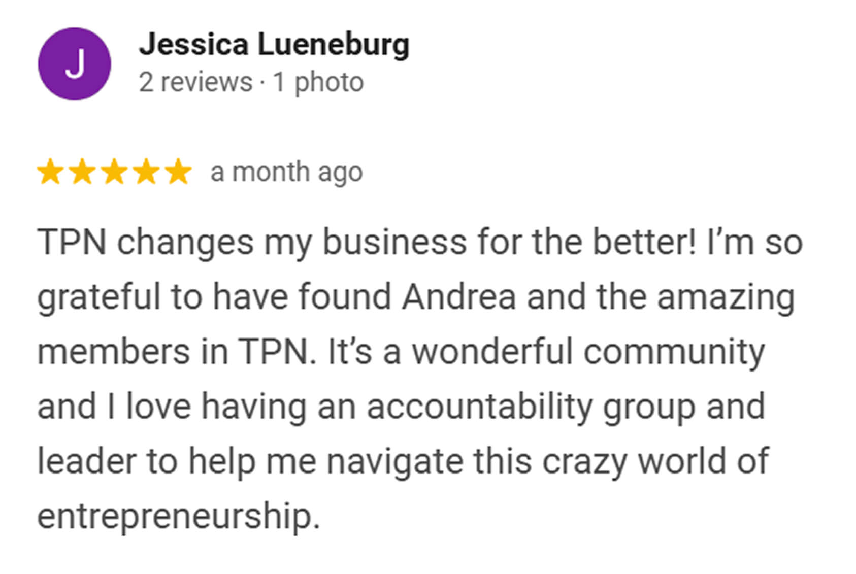 “TPN was the best decision I possibly could have made. Honestly, I wouldn’t even have a business had I not joined.”