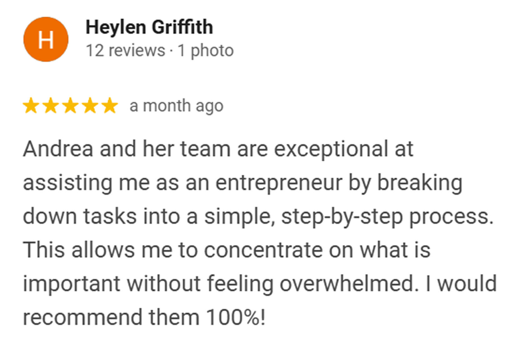 “Andrea and her team are exceptional at assisting me… breaking down tasks into a simple process.”