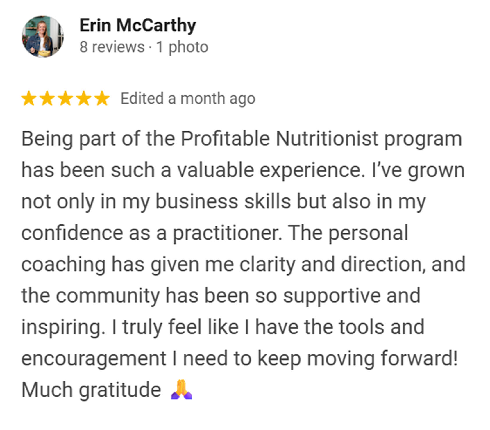 That is exactly what The Profitable Nutritionist® Program gives you: structure, support, and a community of practitioners who are living this dream right now.
