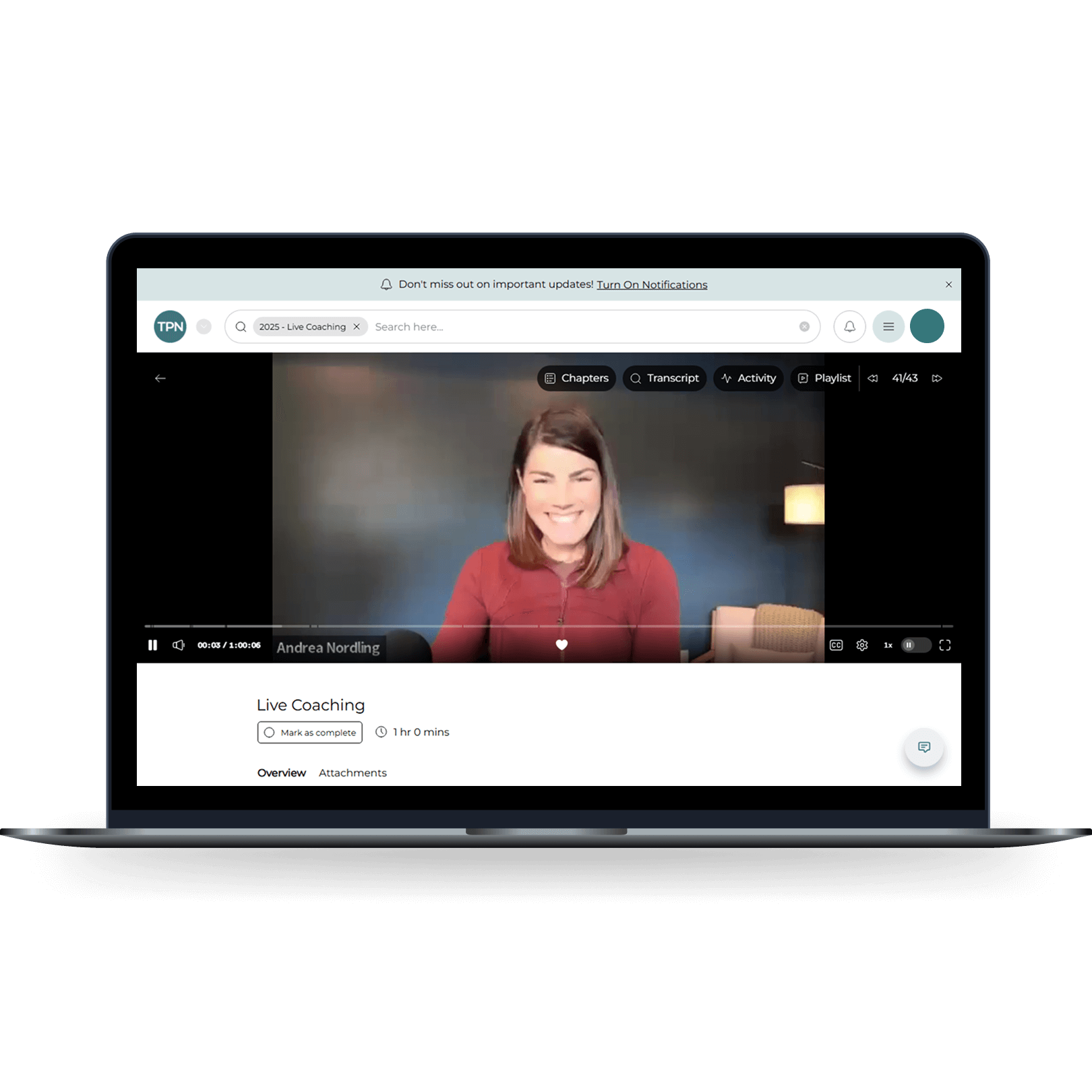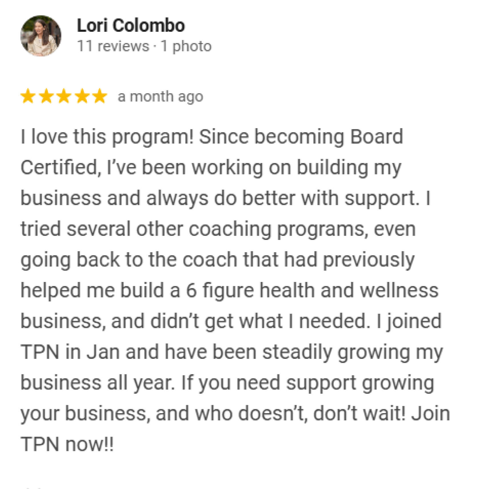 The members-only community component of TPN is called The Lounge, it’s NOT on Facebook, and it’s filled with like-minded peers having massive success in building their health and wellness practice which means they can actually help you.