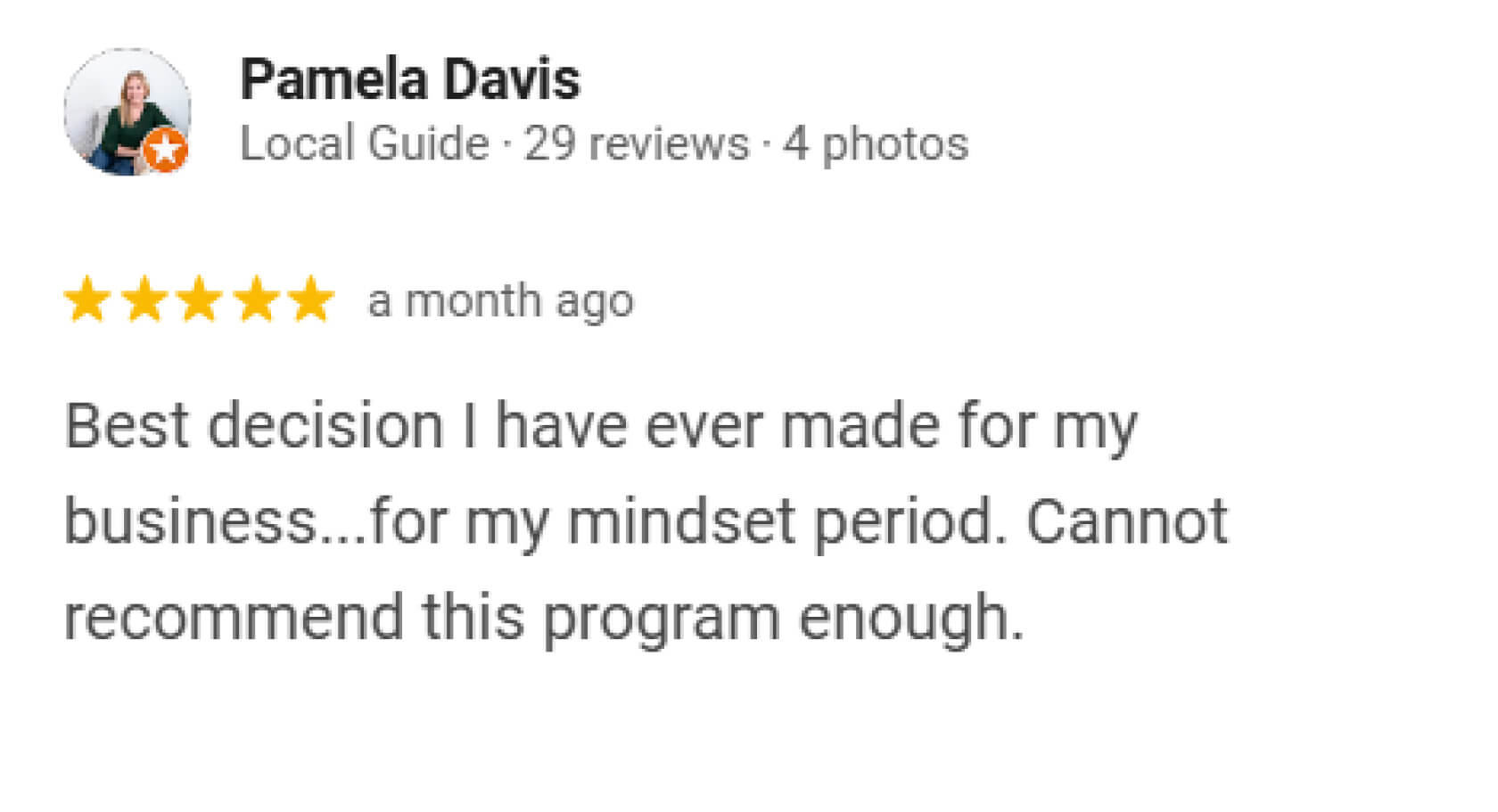 “I would literally clean my bathroom instead of working on my business because I had no idea where to start. After joining, I finally had a clear plan and the confidence to follow through.”