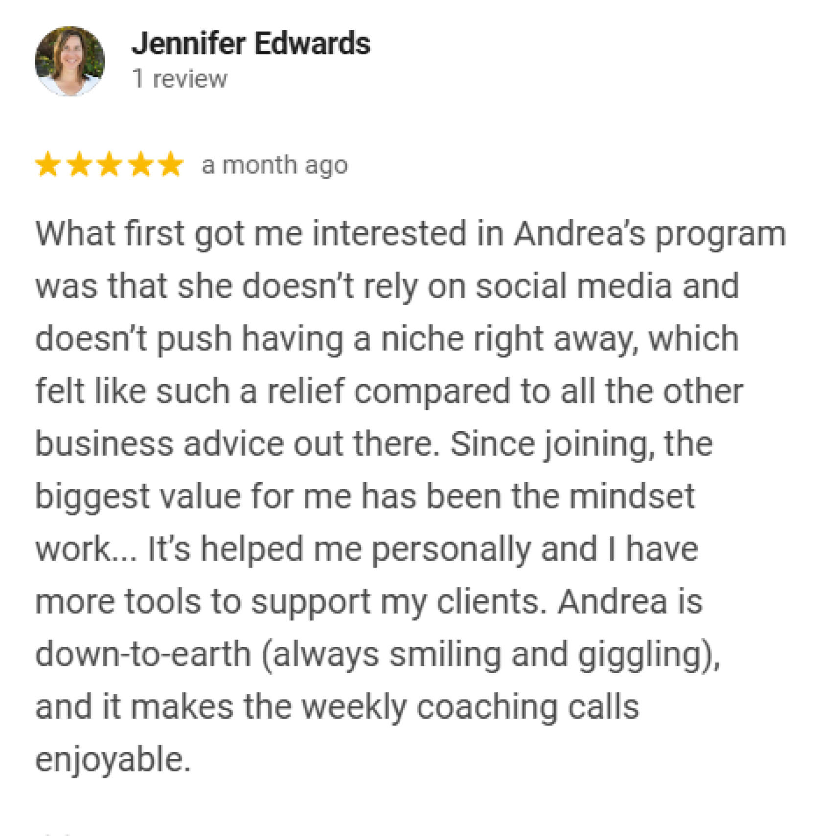 “What I love most is that Andrea’s system doesn’t require you to be a social media influencer.“