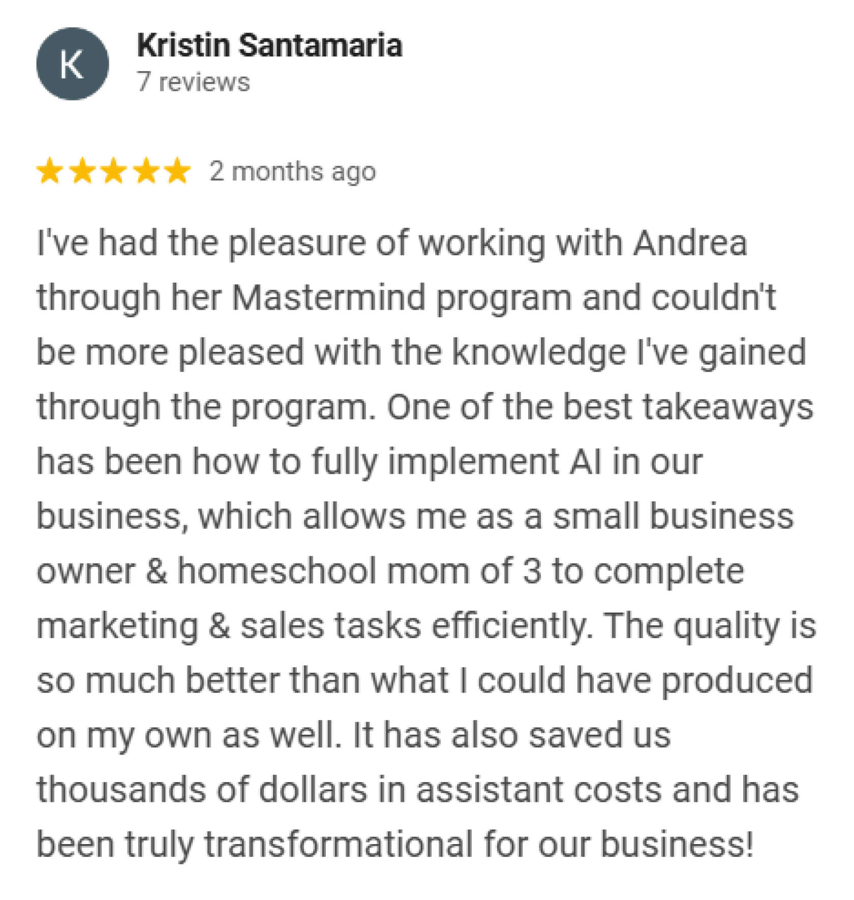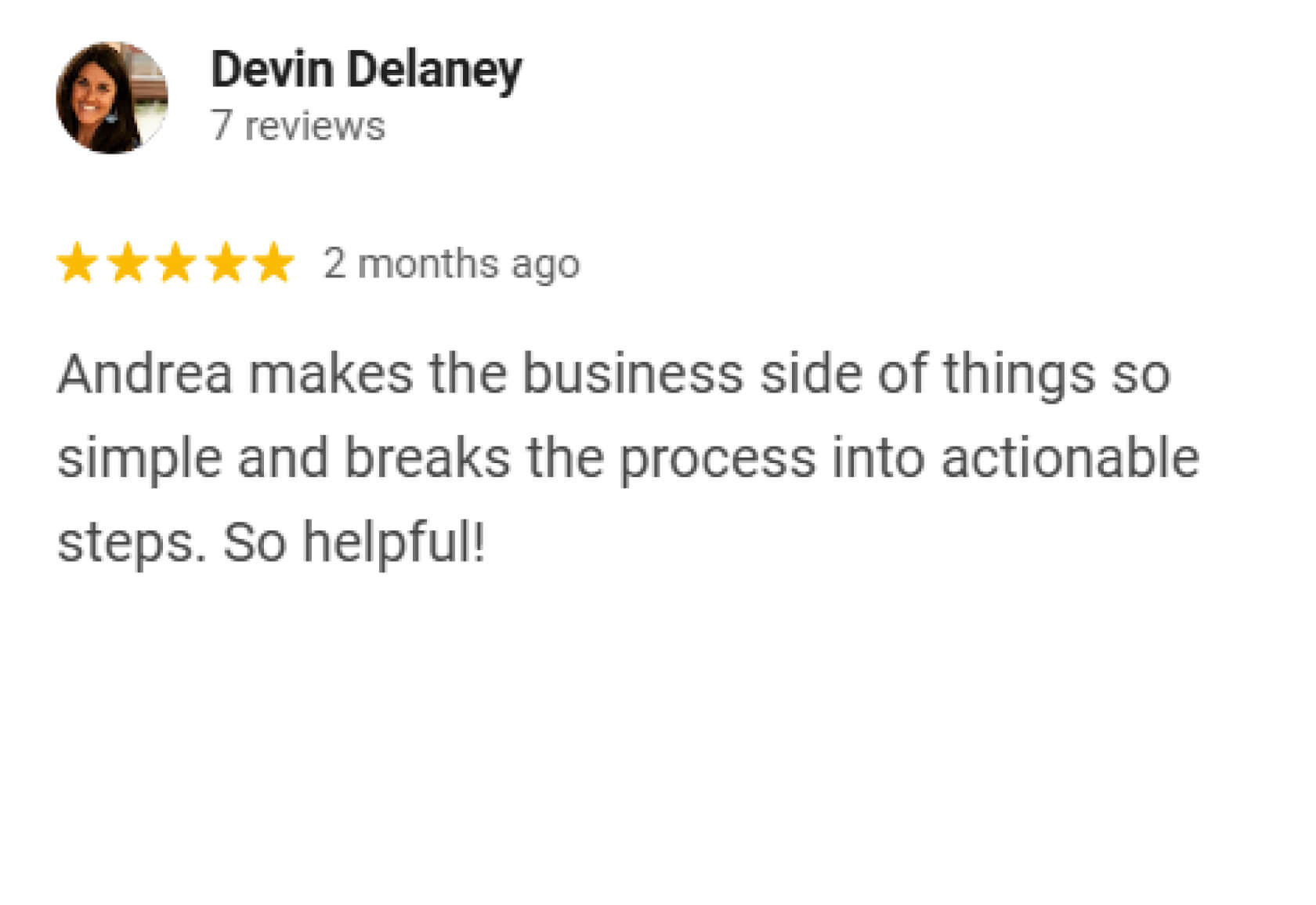 “Andrea makes it so easy. She is real, down to earth, and brilliant at business strategy.”
